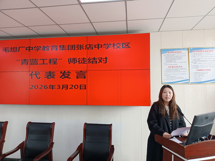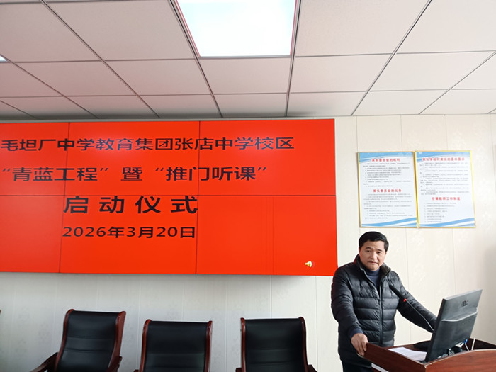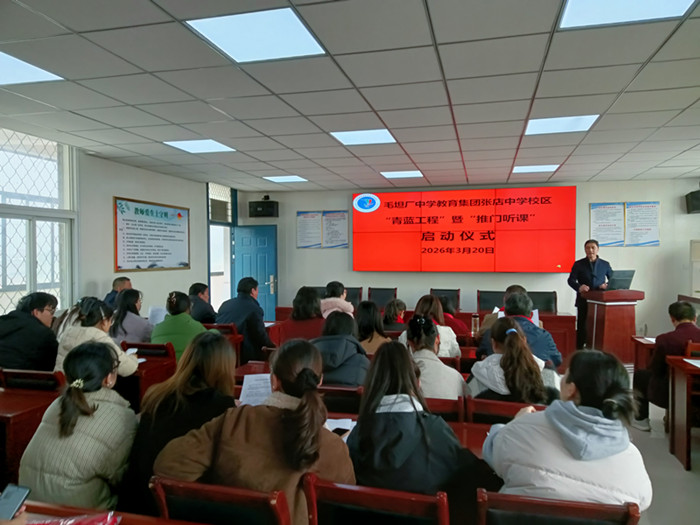 青蓝结对共成长 推门听课促提质。3月20日上午,毛中教育集团张店中学校区“青蓝工程”师徒结对暨“推门听课”启动仪式在综合楼四楼会议室隆重举行。学校领导、全体结对师徒共同参加本次活动,仪式由教导主任阮成权主持。