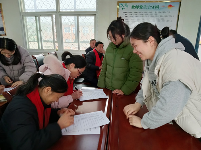 仪式上,阮成权主任介绍了本次活动的重要意义,明确了教科室在活动中的责任与分工,为活动有序开展奠定基础。教科室主任杨文宣读《青蓝工程实施方案》,详细阐明“青蓝工程”与“推门听课”的实施目标,对师徒双方提出具体工作要求与成长期望,并正式公布师徒结对名单。