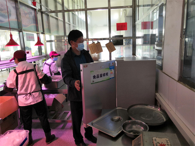 在食堂,检查组查看了食品留样情况,要求后勤服务中心严格落实食品安全主体责任,定期开展动态的食品安全防控风险排查,及时整改安全隐患和风险,确保师生饮食健康和食品安全。