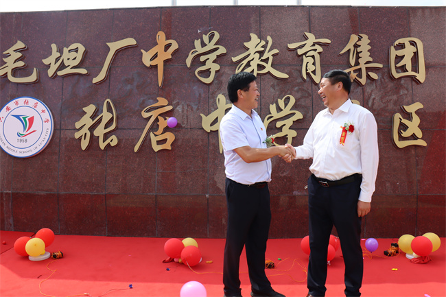 9月13日上午,毛坦厂中学张店中学校区举行揭牌仪式。区委教育工委委员、毛坦厂中学党委书记、校长余存宝同张店中学党委书记、校长左益斌为学校共同揭牌。毛坦厂中学教育集团各校区校长、张店镇镇人民政府有关领导参加了揭牌仪式。