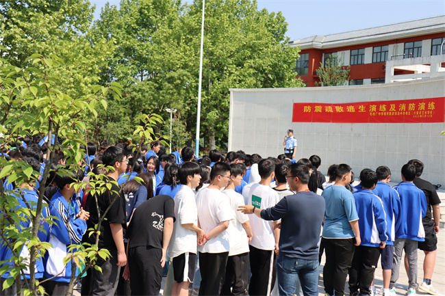 本次防震疏散逃生演练仅用1分31秒,全校1000多名师生疏散到安全地带。时间短,速度快,是一次较成功的演练。通过演练,能有效提高全校师生在地震来临时紧急避险、逃生的能力。消防安全知识的普及,让同学们掌握了应对火灾突发事件的能力,同学们在火灾来临时也能正确使用灭火器,匀速消除火灾危险。(邓启胜)