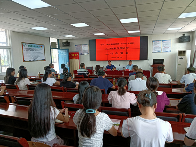 8月21日上午,毛坦厂中学教育集团张店中学校区在校会议室召开2023年秋学期开学工作布置会议,副校长毛用三主持。