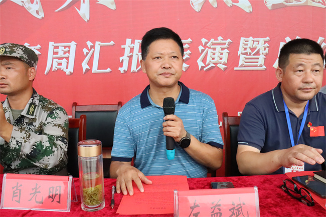 接着,班主任代表、新生代表、教官代表发言。左益斌代表学校向七天来付出辛勤汗水的教官们表示衷心的感谢!向为军训辛苦工作的老师们以及参训的2023级同学们表示亲切的慰问!向取得优异成绩获得先进称号的集体和个人表示热烈的祝贺!左益斌说,这次军训,各位教官以坚定的政治信念、出色的驾驭能力、严明的组织纪律和过硬的军事素质,展示了人民子弟兵的文明、威武和活力,使参训的学生受益匪浅。各位班主任老师以高度的责任感,全身心投入军训工作,言传身教,身体力行,赢得了同学们的尊重,形成了融洽的师生关系。同学们精神饱满,斗志昂扬,步伐矫健,英姿飒爽,用精彩的表现和良好的风貌,展示了军训的优异成果,为军训画上了圆满的句号。回首7天的军训生活,在教官们的精心指导下,同学们从队列动作、纪律作风、内务卫生及规范的作息制度都有着很大的进步。通过军训,同学们增健了体魄,磨炼了意志,提高了自我管理能力,培养了爱国主义情怀,增强了国防观念和国家安全意识,同学们的精神面貌有了可喜的变化,理想和信念也得到了升华。