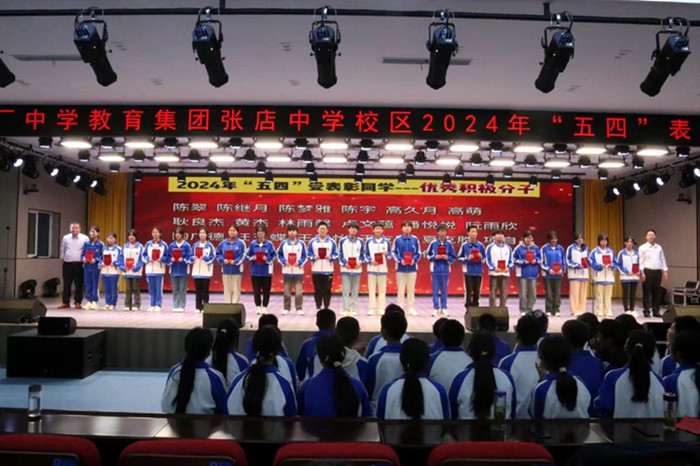 在中国共产主义共青团成立102周年和五四运动105周年之际,为充分发挥青年团员的模范带头作用,激励广大团员踔厉奋发、勇毅前进,4月30日上午,毛坦厂中学教育集团张店中学校区在报告厅举行“青春献祖国,永远跟党走”五四表彰大会暨新团员入团宣誓仪式。校领导班子成员、各班班主任、全校学生参加了活动。