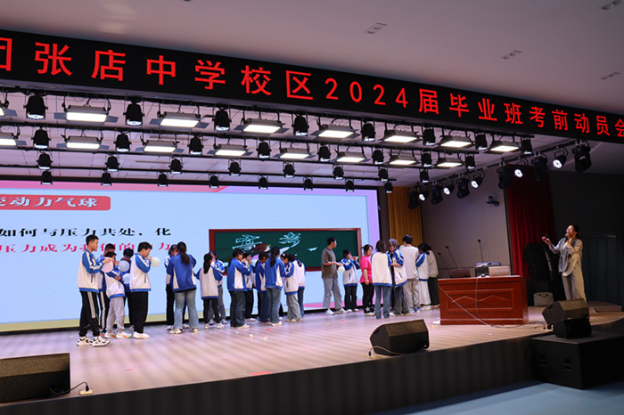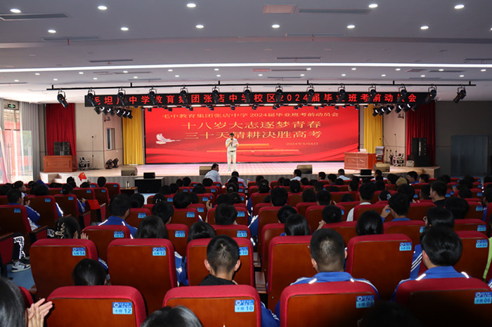 为进一步鼓舞士气,释放学生考前压力,给学生以生涯规划指导,5月6日下午,毛坦厂中学教育集团张店中学校区在校报告厅举行了以“十八岁大志筑梦青春 , 三十天精耕决胜高考”为主题的高考动员大会,校领导、毕业班班主任以及2024届高三全体师生参加了这次动员会。动员大会由教导主任阮成权主持。