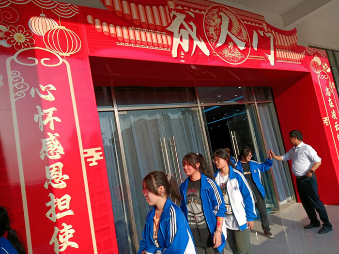最后,举行了成人礼仪式。同学们在高三(6)班黄胜男同学的带领下一齐宣誓,“以我壮志激情,创造崭新未来;以我火红青春,建设锦绣中华。” 同学们铿锵有力的誓言直冲霄外。铮铮誓言辉映出张中高三学子卓然风采,见证青春傲然绽放。宣誓结束,同学们依次迈出矫健的步伐走出成人门,走过“成人门”,预示着他们将翻开了人生崭新的篇章,踏上人生新的征程。(邓启胜)