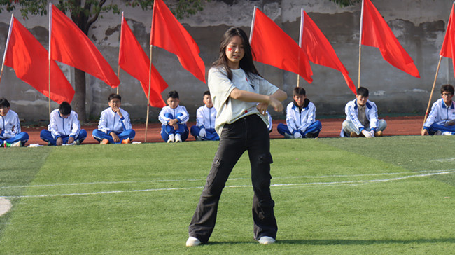 开幕式最后进行了文艺表演。首先是高一(5)班杨骏浩表演的京剧经典《穆桂英挂帅》。穆桂英这位巾帼英雄,她身披战甲,英姿飒爽,以非凡的勇气和智慧挂帅出征,为国家和民族立下赫赫战功,让同学们感受到她的豪情壮志。独自舞动的《我最红》,演绎着一个少年在舞台中央独自闪耀,那是对自我的最初探寻与肯定。串烧《不眠之夜》,如同人生道路上的迷茫与挣扎,在黑暗中不断摸索前行。同学们逐渐懂得,青春不应只有孤独的舞动,更应在磨砺中绽放出绚丽多彩的激情。舞蹈《小城谣》火热的裙装、曼妙的舞姿,将现场气氛推向了高潮,她们跳出了青春的节拍、舞动了生命的色彩。大合唱《我爱你中国》声情并茂,我们的祖国,广袤无垠,涵盖了雄浑壮阔的西北地区、圣洁神秘的青藏地区、豪迈大气的北方地区、温婉灵秀的南方地区。每一个地区都有着独特的文化底蕴和精神风貌,它们共同构成我们伟大祖国。歌声唱出对伟大祖国的无比热爱。精彩的文艺表演赢得了老师、家长、同学们的阵阵掌声与喝彩声。运动会开幕式也在大家的快乐与笑声中划上了句号。接着,校长左益斌宣布毛坦厂中学教育集团张店中学校区第三十七届秋季运动会正式开始。