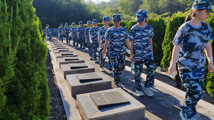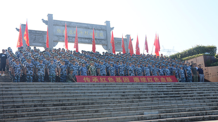 经过近一个小时的跋涉,同学们顺利到达张家店战役烈士陵园。在那里举行了隆重的纪念仪式,仪式由校政教主任邬宗江主持。学生代表向革命烈士们进献了花篮,副校长肖光明、杨辉整理了花篮绶带。历史老师金亮向同学们讲述了张家店战役的经过,新生代表在烈士墓前朗诵诗歌《站在烈士墓前》,并带领同学们宣誓,同学们握紧了右拳进行了集中宣誓:“历史将革命的接力棒传给了我们,今天,我们以革命事业接班人的名义承诺。”铿锵有力的宣誓声响彻云霄。新生代表还在烈士墓前进行了献诗活动。最后肖光明作了总结讲话,他希望同学们从今天起,能把这种感悟装进心里,课堂上,用认真书写对知识的敬畏;生活中,用担当诠释青年的模样;未来里,用行动守护烈士用生命换来的和平。最后同学们瞻仰了张家店战役纪念碑。