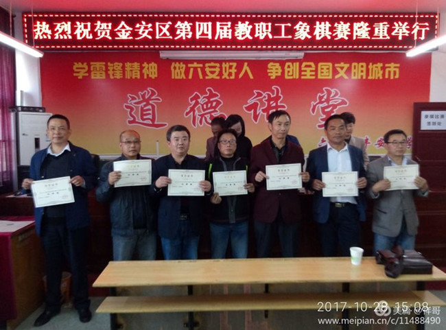 10月28日,金安区第四届教职工象棋大赛在丰安小学举行。来自全区30多个单位的39名选手参加了角逐。我校潘申宏老师参加了比赛,工会副主席邓启胜领队。潘申宏老师分别与对手鏖战五局,获得7积分(总分10分)第五名,最终被授予优秀奖。(邓启胜)