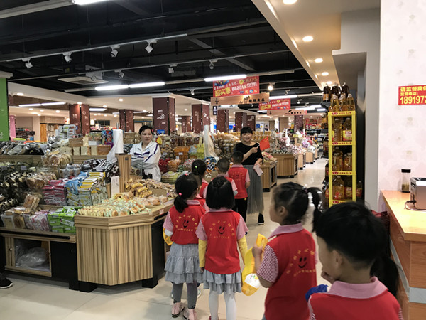 孩子们在老师的带领下来到了张店镇百姓超市,跟着主题活动的节奏,他们认识了不同区域,了解区域的不同作用,识别摆放的不同物品。孩子们从头至尾表现出了遵守秩序、有爱礼貌、爱护超市物品的良好品质。