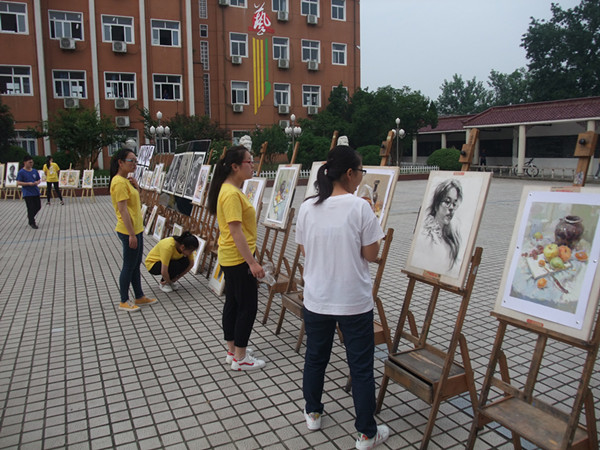6月4日,张店中学在教学楼前广场举行了第五届师生美术作品展。