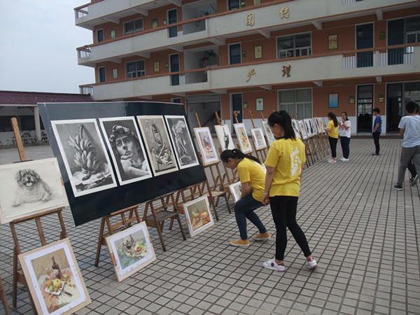 在本次师生美术作品画展中共收到美术作品150件,创作形式多种多样,有油彩画、国画、水粉画、素描等。入选的95幅作品以展板的形式在校内进行展出,不时引来师生的驻足观看、欣赏、品评。师生通过书画创作展示了自己的特长,特别是规范的绘画给广大师生起到了示范作用。在作品创作中,同学们展开想象的翅膀,尽情抒发了对学校,对生活的热爱之情。