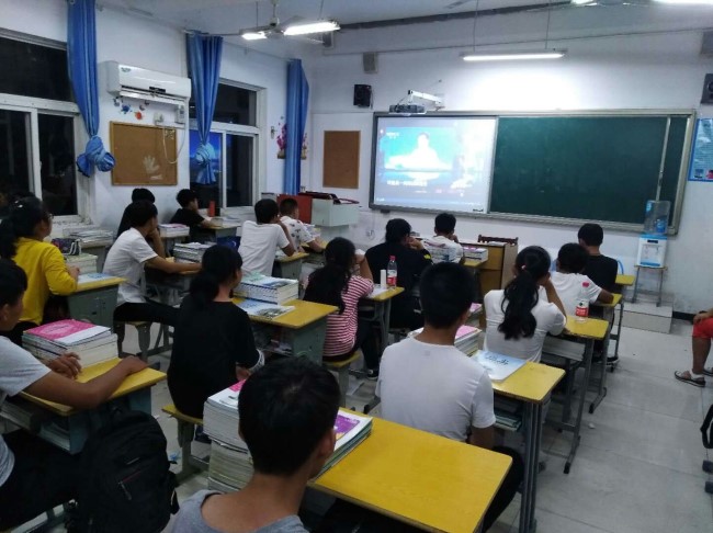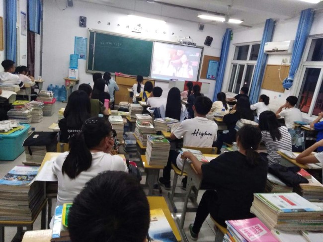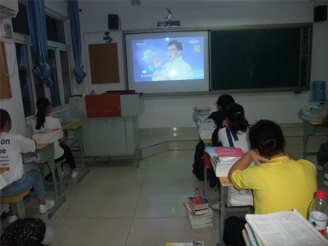 9月1日晚8点,张店中学各班级的同学们都坐在教室里观看中央台一套播放的《开学第一课》。