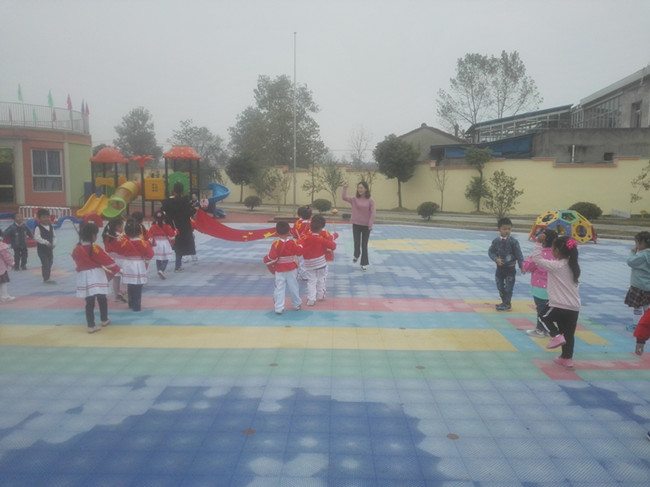 10月15日星期一,是张店镇中心幼儿园升旗的日子,全体幼儿穿着整齐的园服,早早的来到幼儿园,在本班老师的带领下,等待升旗仪式的到来。 早上8:45整,升旗仪式正式开始,伴随着激昂有力的出旗乐曲,大一班四位升旗手护卫着国旗,步履轩昂大步向前走,赢得了老师、家长和小朋友们赞赏的眼光;国歌响起,升旗手有节奏地拉着升旗绳,鲜艳的五星红旗徐徐升起,全场的小朋友们、家长、老师们伴随着乐曲唱起国歌,歌声嘹亮,悦耳动听。国旗迎风飘扬,昭示着张店镇中心幼儿园的孩子们在幸福的时代快乐健康成长。 孩子们是祖国未来、是祖国的希望。因此爱国主义教育是不必不可少的,希望我们的孩子健康成长,我们的祖国繁荣昌盛。(邓启胜)
