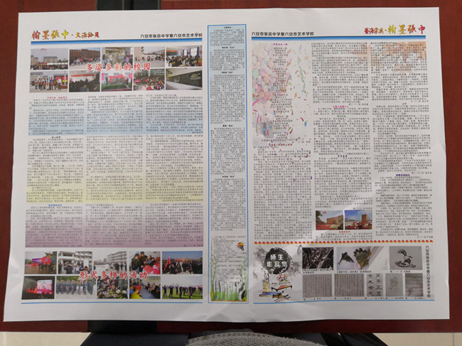 10月22日,经过近一个月的精心设计由张店中学文学社主办的第400期新版校园报终于出版。 新版校园报相对于旧版有着较大的改观,除版面增加一倍以外,页面全部采用彩印,文字与图画搭配相得益彰,美观大方,给人以赏心悦目的感觉。报纸内容以“翰墨张中,和美校园”为主题,分为“新闻瞭望”、“漫游世界”、“文海拾贝”、“益海采英”四个板块,第一板块的校长寄语体现出陈校长对同学们的谆谆教诲和殷切期望,每个版块同学们用文字、绘画等叙写张店中学师生活动的点点滴滴,展现张中的精神风貌,每一件作品都是同学们的真情流出,显示出张中学子的理想远大、昂扬奋进、永不言弃的美好品格。新校园报出版以后,同学们爱不释手,都期待着下期早些出版。(邓启胜)