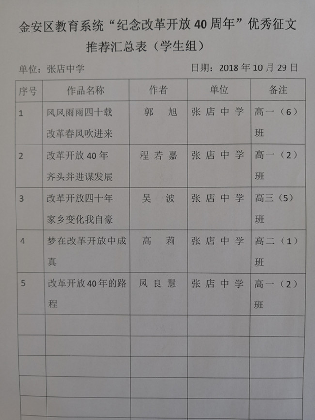 10月3 0日,张店中学教育工会组织开展了 “纪念改革开放40周年”主题征文评选活动。