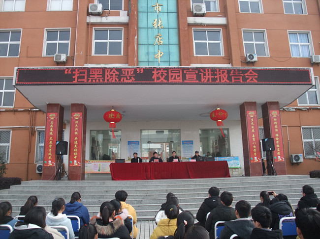 4月1日下午,张店中学召集全校900余名师生,在校红旗广场参加扫黑除恶宣讲会活动。大会邀请了张店派出所的警官来给同学们作扫黑除恶专题讲座。大会由副校长左益斌主持。 民警向同学们讲述了什么是黑恶势力,面对黑恶势力我们应该如何运用法律武器保护自己等相关知识,并结合实际案例讲解了黑恶势力对社会造成的危害,使广大学生从小养成遵纪守法,遵守学校规章制度的良好行为,树立与黑恶势力作斗争的决心。 什么是恶势力?什么又是黑势力?讲解结束后,学生纷纷用简单直白的话语说出了自己的理解:“黑恶就像老鼠一样,吃别人的喝别人的,要让他们消失在阳光下。”“欺负同学、敲诈勒索这些都不好,如果碰到了都不敢来学校上学了。”一问一答之间,扫黑除恶知识记入同学们的心中。(邓启胜)