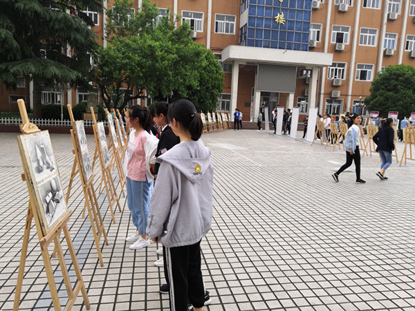 5月16日,六安市艺术学校在教学楼前广场举行2019年师生美术作品展。