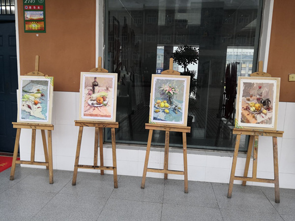 1月2日,张店中学在教学楼前举行学生美术综合素质汇报展览。