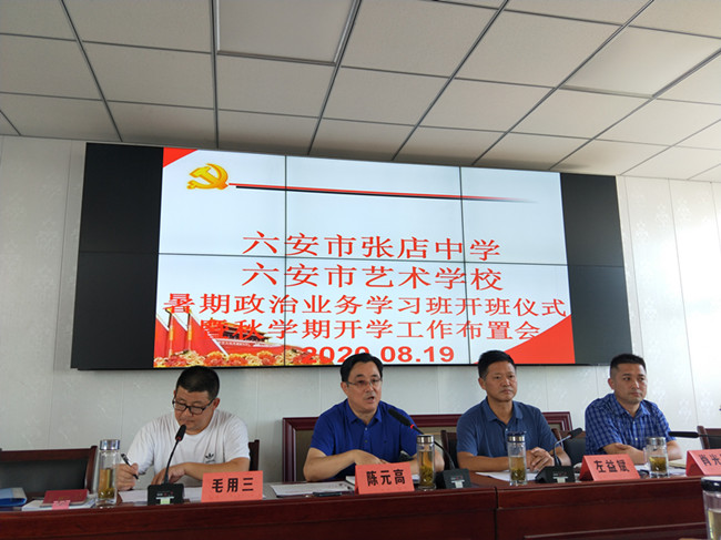 8月19日上午,张店中学在校四楼会议室召开2020年暑政治业务学习动员会暨秋学期开学工作布置会,区委教育工委委员、张店中学党支部书记陈元高参加了会议,会议由副校长毛用三主持。