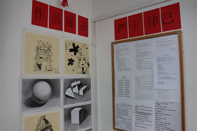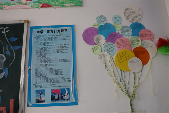 随意走进每一间教室,一幅幅美丽的画卷便展现在眼前——教室整体布置整洁而优雅,特色文化精彩纷呈。走进每个班级,都能感受到不同的氛围,有的班级活泼灵动,色彩跳跃;有的班级布置可爱,独具创意;有的教室靓丽智慧,书香素雅。每个教室窗明几净,地面干净,桌椅排放整齐。张中的每个同学都能管理好自己的个人区域,将个人物品摆放整齐,并保持桌肚和桌凳的干净整洁。在教室宣传板上,同学们展示着色彩缤纷的绘画作品和书法作品,还有同学们设计精美的手抄报等来布置,内容丰富多彩。为了发挥每一面展板的育人作用,各班利用展板展示学生风采,“秀我风采”、“我们的天空”、“信息栏”、“科学技术”、“