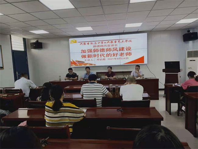 8月24日,张店中学在四楼会议室召开师德师风宣讲会,工会主席邓启胜作了“加强师德师风建设,做新时代的好老师”为主题的报告,副校长毛用三主持。校全体老师聆听了宣讲。