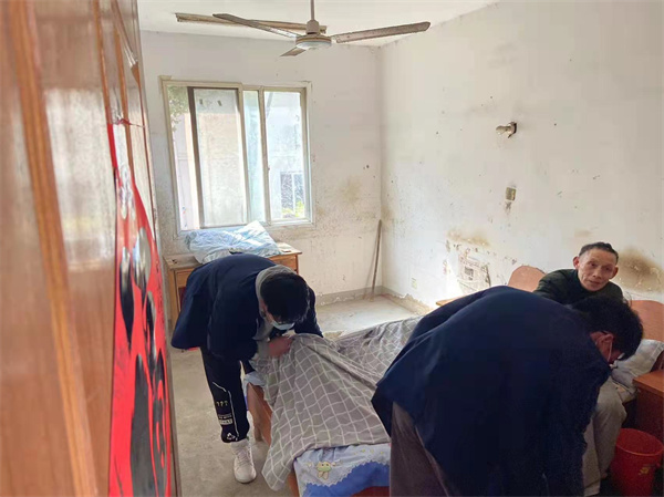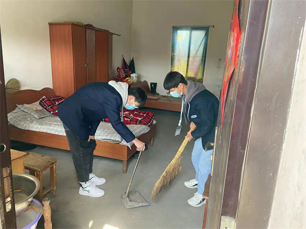 上午九点,同学们穿上校服,整齐列队,在校门口集合。左校长指出了本次活动的重要意义,提出了具体的纪律要求。随后,师生们迈着激扬的步伐来到了张店镇白塔寺敬老院,开始了活动的具体分组分工。