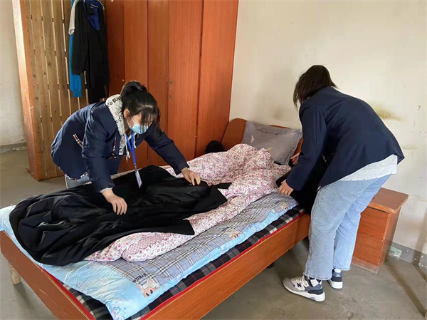 一到目的地,学雷锋队一行便动起手来,志愿者们有的主动帮老人叠衣理被,抹窗扫地;有的搀扶着老人到向阳处晒太阳,一会揉肩一会捶背;有的同学亲密地和老人唠起家常,为他们读着报纸;还有的替他们拔出院中菜地里的杂草。在志愿者们热情帮助的感染下,有的老人也主动和志愿者们攀谈起来,原本寂静的敬老院一下变得热闹起来。看到老人们脸上洋溢的笑容,同学们也满足地笑了。