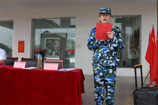 教官代表在会上发言,表示将以高度的责任感和使命感认真组织好、完成好此次军训任务,树立良好的军人榜样,以身作则,认真履行教官应尽的职责,同时对新生提出严格要求,相信同学们一定会圆满完成训练任务。