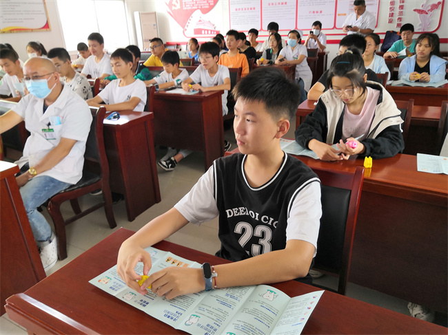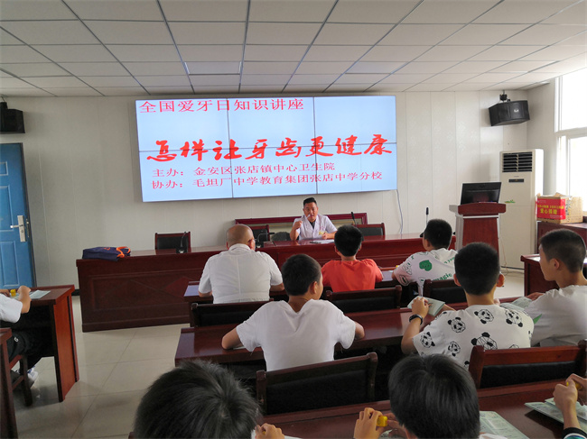 9月20日是第34个“全国爱牙日”。为广泛宣传口腔保健知识,提高同学们们的口腔保健意识,张店镇中心卫生院口腔医生来校对学生开展“怎样让牙齿更健康”宣传活动。