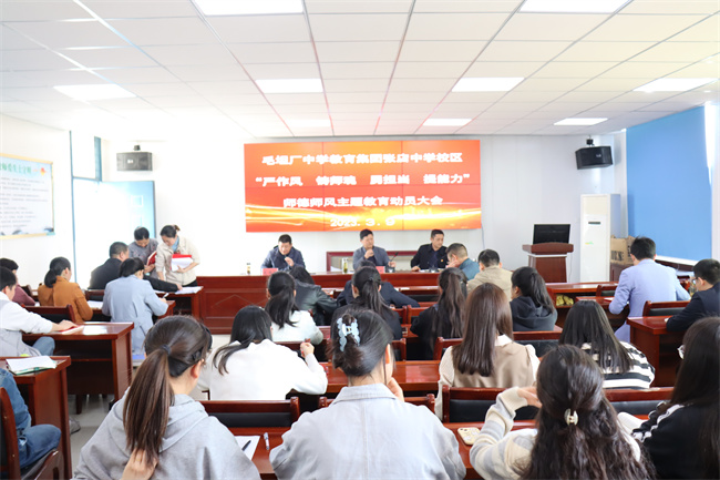 为贯彻落实区教育局师德师风相关文件精神,进一步加强学校教师队伍建设,弘扬高尚师德,树立优良师风,提高师德水平和业务能力,3月9日上午,张店中学在校会议室召开了“严作风 铸师魂 勇担当 提能力”师德师风主题教育活动动员大会,全校教职员工都参加了大会,大会由副校长肖光明主持。