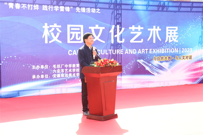 他相信,本届校园艺术作品展,必将营造一种浓郁的文化氛围,最有效地激发全体师生追求美好生活和艺术的满腔热情,为每一个热爱艺术的人提供一个观察美、欣赏美、体验美、创造美的广阔天地,也必将进一步推动校园文化向更高层发展。