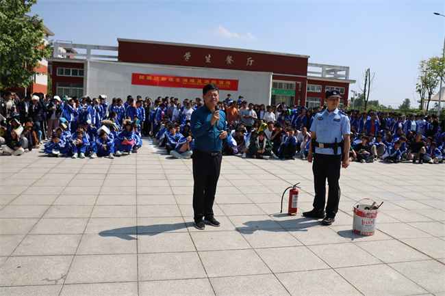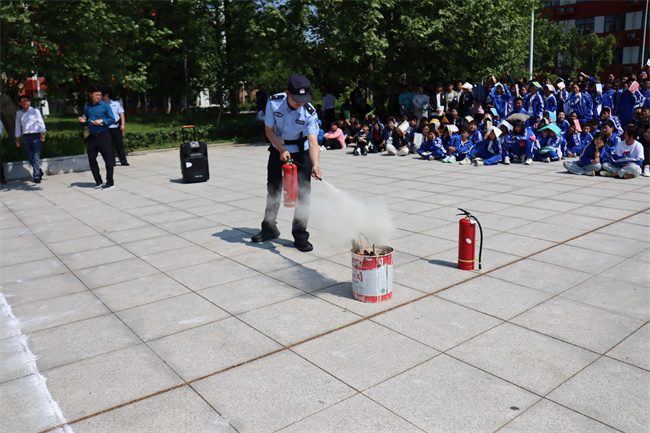 接着,张店镇派出所的警官为同学们进行了消防安全知识宣传,警官向同学们讲述了火灾发生后的严重后果及发生火灾后的安全疏散与逃生知识,以实际生活中的许多真实案例,讲解了如何安全用电、用气及发生火情时的紧急措施和自救、逃生的方法。随后,警官向同学们讲解了灭火器的使用方法,并进行了现场示范操作,同学们也进行模拟训练。