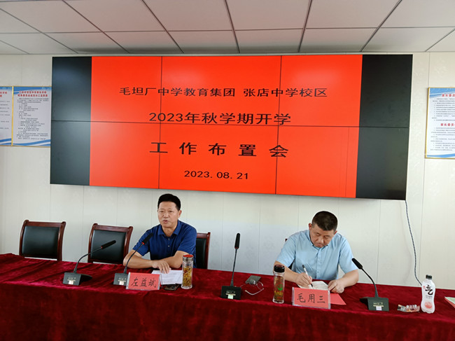 8月21日上午,毛坦厂中学教育集团张店中学校区在校会议室召开2023年秋学期开学工作布置会议,副校长毛用三主持。
