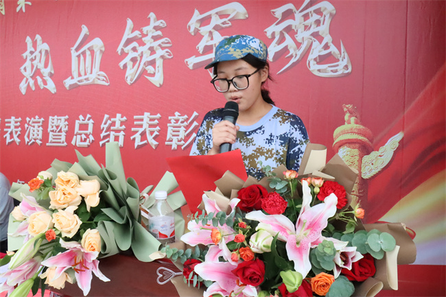 接着,班主任代表、新生代表、教官代表发言。左益斌代表学校向七天来付出辛勤汗水的教官们表示衷心的感谢!向为军训辛苦工作的老师们以及参训的2023级同学们表示亲切的慰问!向取得优异成绩获得先进称号的集体和个人表示热烈的祝贺!左益斌说,这次军训,各位教官以坚定的政治信念、出色的驾驭能力、严明的组织纪律和过硬的军事素质,展示了人民子弟兵的文明、威武和活力,使参训的学生受益匪浅。各位班主任老师以高度的责任感,全身心投入军训工作,言传身教,身体力行,赢得了同学们的尊重,形成了融洽的师生关系。同学们精神饱满,斗志昂扬,步伐矫健,英姿飒爽,用精彩的表现和良好的风貌,展示了军训的优异成果,为军训画上了圆满的句号。回首7天的军训生活,在教官们的精心指导下,同学们从队列动作、纪律作风、内务卫生及规范的作息制度都有着很大的进步。通过军训,同学们增健了体魄,磨炼了意志,提高了自我管理能力,培养了爱国主义情怀,增强了国防观念和国家安全意识,同学们的精神面貌有了可喜的变化,理想和信念也得到了升华。