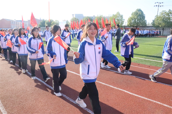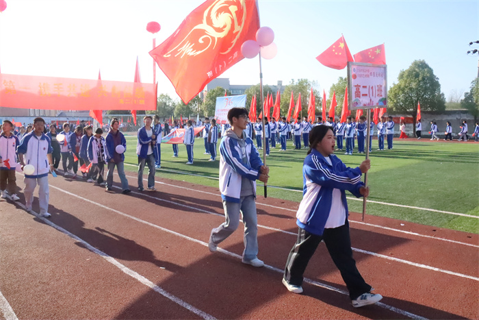 上午8点进行入场仪式。伴随着激昂的运动会进行曲,首先入场的是国旗、校旗、运动会会徽、红旗方阵,同学们朝气蓬勃,整齐划一,充分彰显了张中学生团结自强、拼搏向上的精神风貌。紧随其后的是25个运动员代表队方阵和裁判员方队,他们着装整齐、步伐矫健,精神抖擞、意气风发 ,高喊着响亮的口号依次走过主席台,接受各位领导、来宾及老师的检阅。