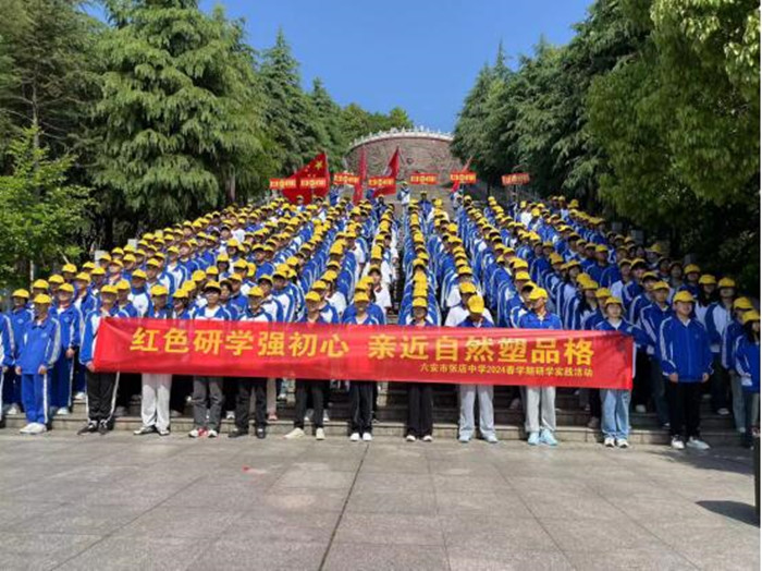 为弘扬爱国主义精神,继承革命传统,更好的传承红色精神,亲近自然塑造品格,4月26日,毛坦厂中学教育集团张店中学校区高二、初二学生赴金寨开展了主题为“红色研学强初心,亲近自然塑品格”的红色之旅研学主题实践活动。五百多名学生在研学教官的带领下前往著名红色将军县——金寨县瞻仰学习。