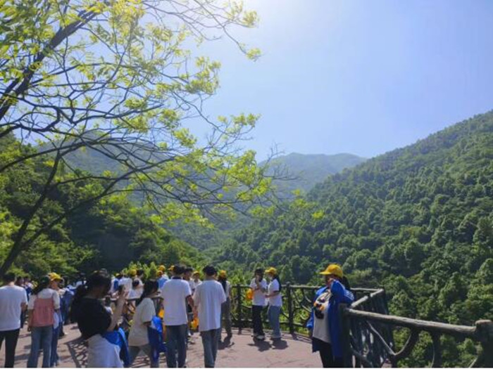 最后一站,同学们走进六万情峡电影小镇。六万情峡景区规划面积约12平方公里,综合开发项目总投资10.8亿元,是集抗日文化体验、户外运动、山地观光、休闲度假等为一体的综合型生态文化旅游区。目前,鹿吐石铺抗战史剧实景演出区、竹排荡舟景观区、民国风情古街食宿购物演艺广场区现已建成。同学们尽情享受这里的特色旅游文化。“八月桂花遍地开,鲜红的旗帜竖呀竖起来……”在六万情峡景区演出馆内,一部真实感人的大型实景剧表演《大别山传奇》,以跌宕起伏的情节和扣人心弦的歌舞艺术,再现了当年皖西人民不怕牺牲、艰苦抗战的光辉岁月。同学们用一次次的掌声表达着心中对无数前赴后继不怕牺牲的英雄们的崇高敬意,同时也深切感受到今天幸福生活的来之不易。