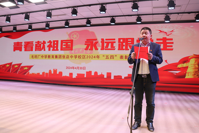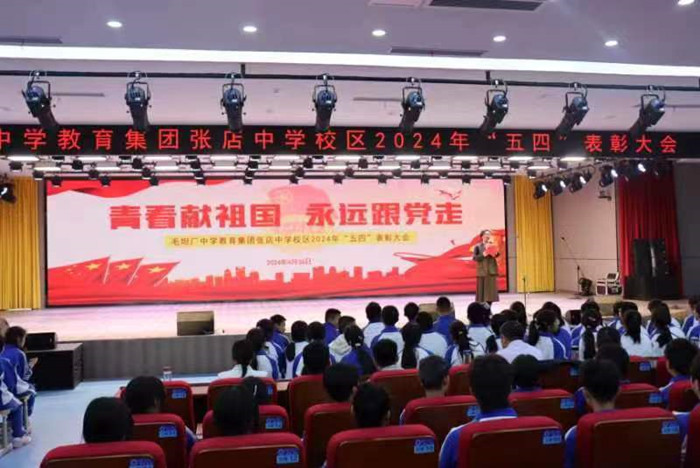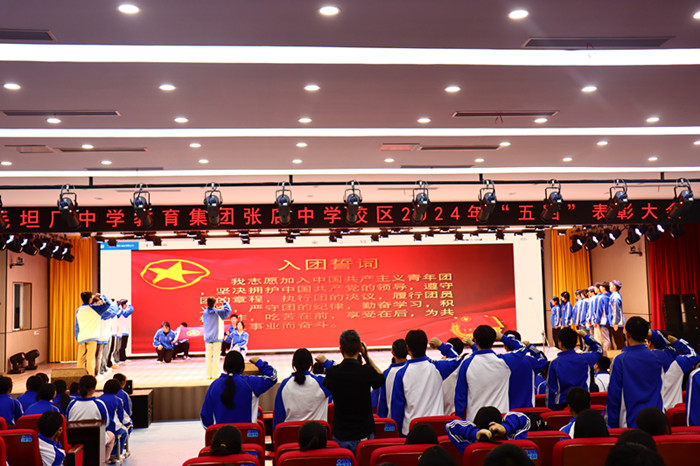 在中国共产主义共青团成立102周年和五四运动105周年之际,为充分发挥青年团员的模范带头作用,激励广大团员踔厉奋发、勇毅前进,4月30日上午,毛坦厂中学教育集团张店中学校区在报告厅举行“青春献祖国,永远跟党走”五四表彰大会暨新团员入团宣誓仪式。校领导班子成员、各班班主任、全校学生参加了活动。