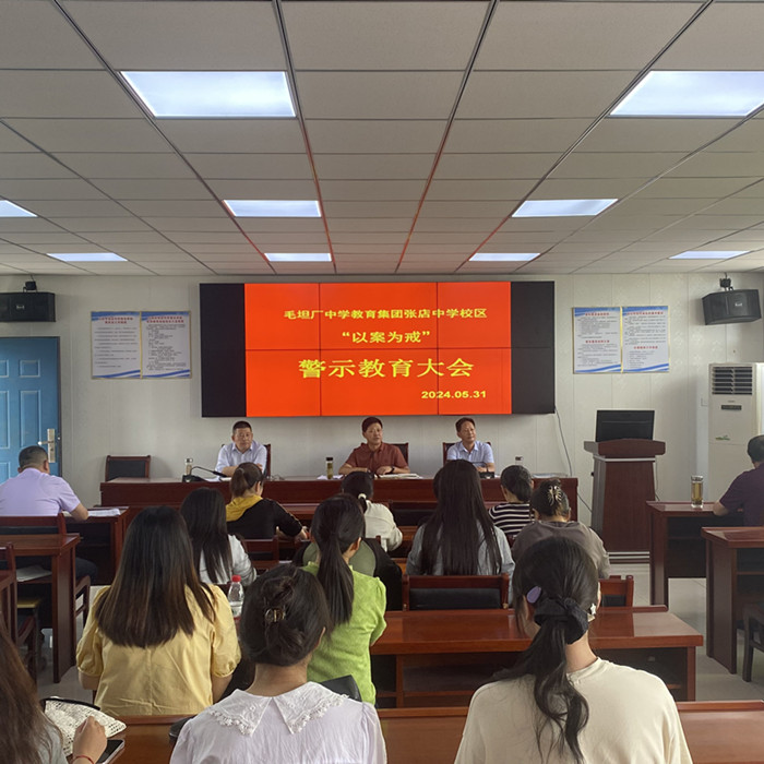 为进一步规范教师行为,强化师德师风建设,5月31日,毛坦厂中学教育集团张店中学校区召开了“以案为戒”警示教育大会,会议由校党支部书记、校长左益斌主持,该校领导班子及全体教职员工参加了此次大会。