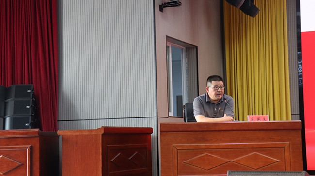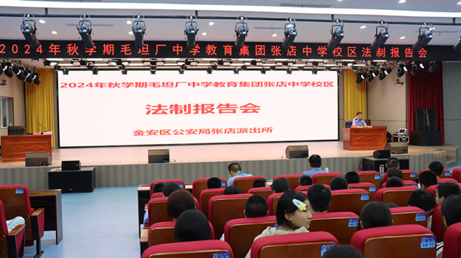 9月19日下午,毛坦厂中学教育集团张店中学校区召集全校师生,在校报告厅召开2024年秋学期法制报告会。大会邀请了校法制副校长、张店镇派出所所长郭明益来给同学们作安全讲座。大会由校党支部副书记毛用三主持。