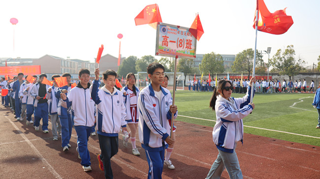 上午8点进行入场仪式。伴随着激昂的运动会进行曲,首先入场的是国旗、校旗、运动会会徽、红旗方阵,同学们朝气蓬勃,整齐划一,充分彰显了张中学生团结自强、拼搏向上的精神风貌。紧随其后的是27个运动员代表队方阵和裁判员方队,他们着装整齐、步伐矫健,精神抖擞、意气风发,高喊着响亮的口号依次走过主席台,接受各位领导、来宾及老师的检阅。