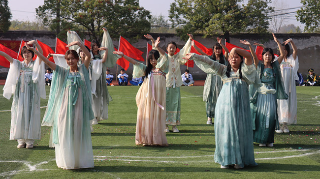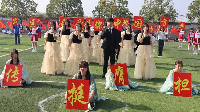 开幕式最后进行了文艺表演。首先是高一(5)班杨骏浩表演的京剧经典《穆桂英挂帅》。穆桂英这位巾帼英雄,她身披战甲,英姿飒爽,以非凡的勇气和智慧挂帅出征,为国家和民族立下赫赫战功,让同学们感受到她的豪情壮志。独自舞动的《我最红》,演绎着一个少年在舞台中央独自闪耀,那是对自我的最初探寻与肯定。串烧《不眠之夜》,如同人生道路上的迷茫与挣扎,在黑暗中不断摸索前行。同学们逐渐懂得,青春不应只有孤独的舞动,更应在磨砺中绽放出绚丽多彩的激情。舞蹈《小城谣》火热的裙装、曼妙的舞姿,将现场气氛推向了高潮,她们跳出了青春的节拍、舞动了生命的色彩。大合唱《我爱你中国》声情并茂,我们的祖国,广袤无垠,涵盖了雄浑壮阔的西北地区、圣洁神秘的青藏地区、豪迈大气的北方地区、温婉灵秀的南方地区。每一个地区都有着独特的文化底蕴和精神风貌,它们共同构成我们伟大祖国。歌声唱出对伟大祖国的无比热爱。精彩的文艺表演赢得了老师、家长、同学们的阵阵掌声与喝彩声。运动会开幕式也在大家的快乐与笑声中划上了句号。接着,校长左益斌宣布毛坦厂中学教育集团张店中学校区第三十七届秋季运动会正式开始。