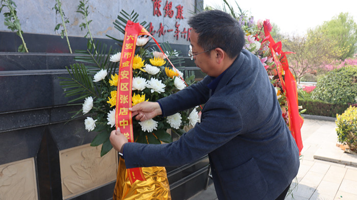 4月3日上午,毛坦厂中学教育集团张店中学校区高二、八年级全体学生、部分老师,500余人来到张家店战役烈士陵园进行“铭记历史 缅怀先烈”清明扫墓活动,祭奠革命烈士们的英灵,追思烈士崇高的家国情怀。