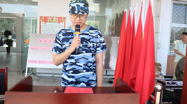 学生代表发言,他代表全体参训学生庄严承诺:“我们将以满腔的热情、不屈的斗志,全身心投入到军训之中,用辛勤的汗水书写青春的华章,充分展现张中学子积极向上、勇于拼搏的精神风貌。”