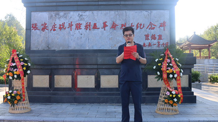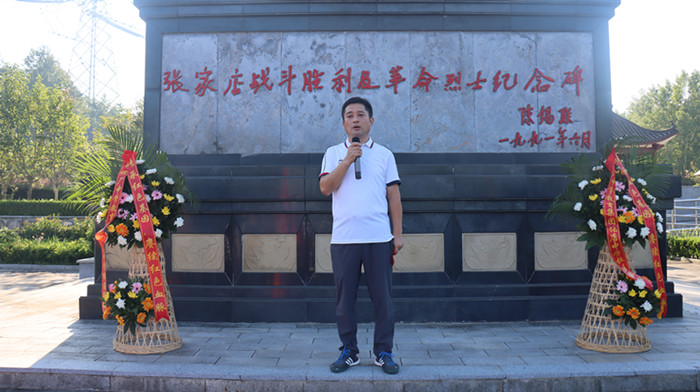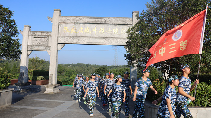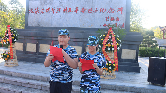 经过近一个小时的跋涉,同学们顺利到达张家店战役烈士陵园。在那里举行了隆重的纪念仪式,仪式由校政教主任邬宗江主持。学生代表向革命烈士们进献了花篮,副校长肖光明、杨辉整理了花篮绶带。历史老师金亮向同学们讲述了张家店战役的经过,新生代表在烈士墓前朗诵诗歌《站在烈士墓前》,并带领同学们宣誓,同学们握紧了右拳进行了集中宣誓:“历史将革命的接力棒传给了我们,今天,我们以革命事业接班人的名义承诺。”铿锵有力的宣誓声响彻云霄。新生代表还在烈士墓前进行了献诗活动。最后肖光明作了总结讲话,他希望同学们从今天起,能把这种感悟装进心里,课堂上,用认真书写对知识的敬畏;生活中,用担当诠释青年的模样;未来里,用行动守护烈士用生命换来的和平。最后同学们瞻仰了张家店战役纪念碑。