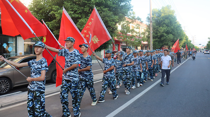 8月27日上午,毛坦厂中学教育集团张店中学校区开展2025年新生军训活动中的徒步拉练科目。600多名2025级新生,被分成11个连队,从学校出发,沿着芮张路、六毛路、张家店战役烈士陵园、洪山大市场徒步行军,拉练总行程约10公里。
