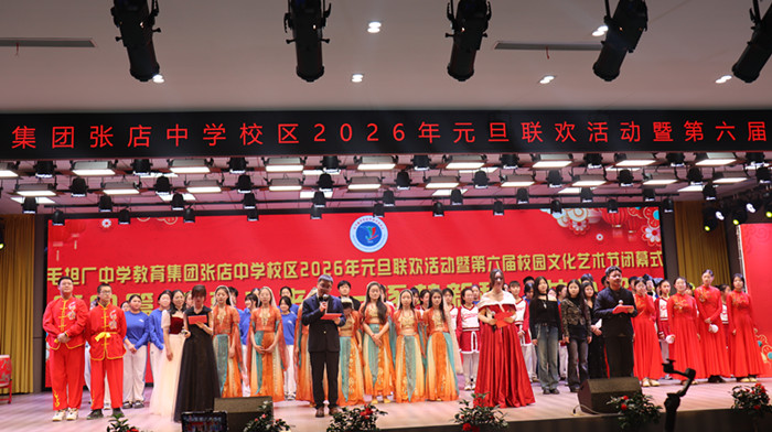 凝心聚力谋发展,团结奋进谱新篇。12月30日晚,毛坦厂中学教育集团张店中学校区“燃放青春,智享未来”2026年元旦联欢活动暨第六届文化艺术节闭幕式在校报告厅隆重举行。校领导班子全体成员及1000余名师生齐聚一堂,畅想过去,展望未来。
