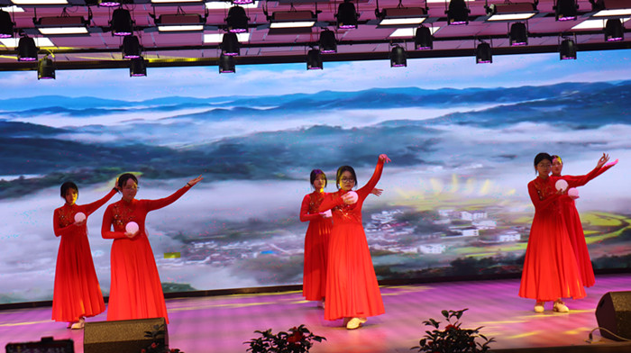 最后进入第四篇章“智享未来——筑梦新程、共赴韶华”,首先是话剧《如愿》,他们以青春的视角对话历史,传递出对先辈的缅怀和对当下生活的珍视;舞蹈《灯火里的中国》,在优美的舞姿中,感受传统文化的魅力,追寻青春的初心与梦想。最后是马元玲老师领唱,全体师生合唱《明天会更好》,全体师生让歌声传递对未来的美好憧憬,歌声响彻云霄,将精彩的节目表演推向了高潮。