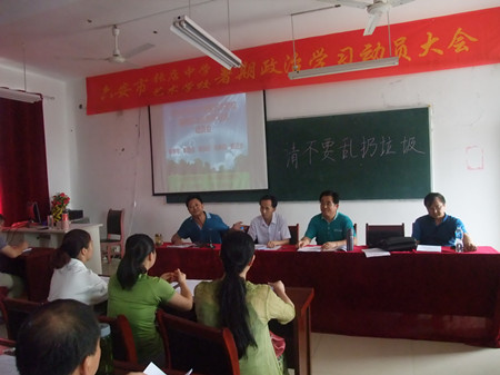 8月23日上午9点钟,张店中学在教学楼四楼会议室召开全体教职工暑期政治、业务学习动员会,教育局李常委、邵主任参加了会议,李常委作了动员报告。